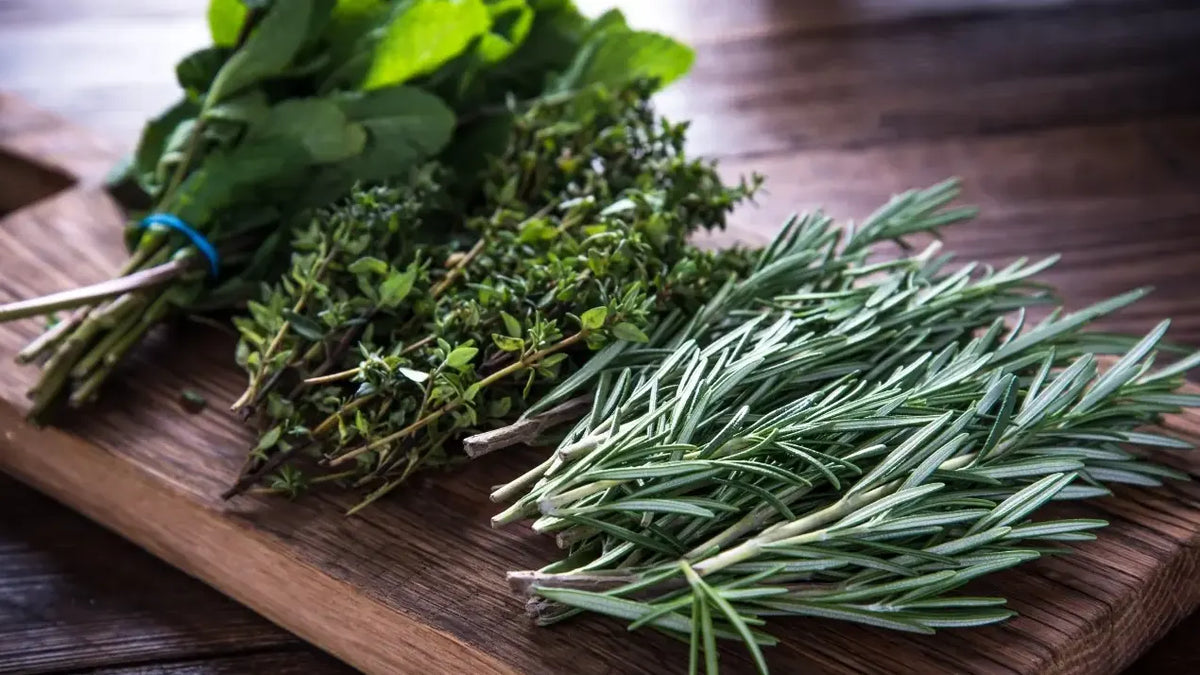 - Röste Gewürze, wie: Rosmarin, Thymian, Pfeffer, Wacholderbeere und Lorbeer in der Pfanne an