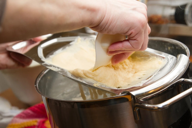 Spätzle oder Klöße kannst du übrigens ganz einfach selbst machen. Dazu benötigst du nicht viel. Für Spätzle brauchst du nur einen ganz normalen Teig aus Mehl, Eiern und Wasser. Diesen bringst du mithilfe eines Spätzlehobels über kochendem Wasser in Form und wartest, bist die Spätzle oben schwimmen. Dann sind sie fertig.