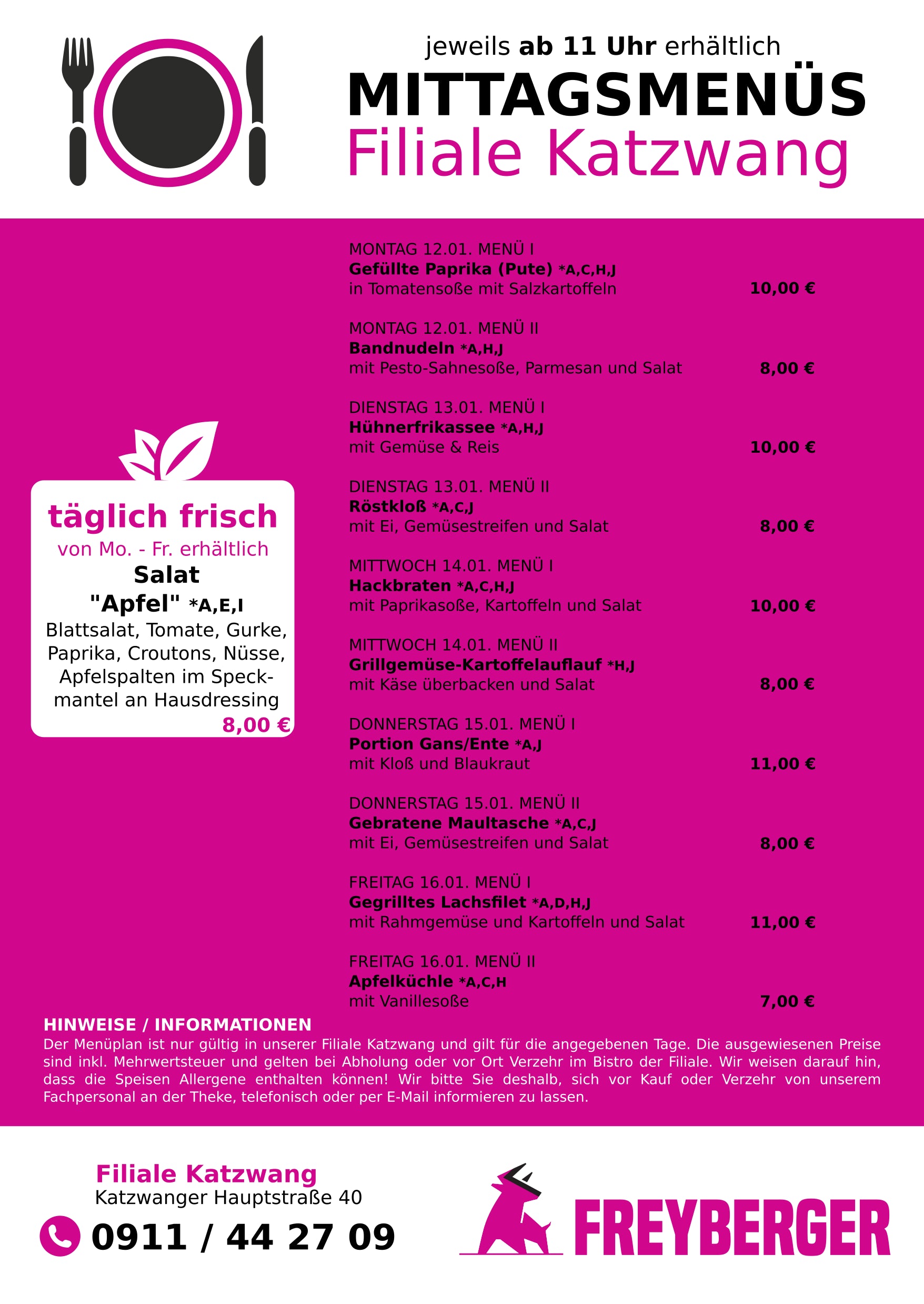 Our lunch menus